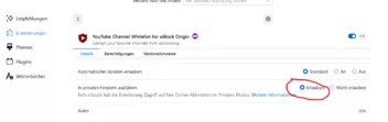 Allerdings machen die Seiten auch Probleme wenn sie im Privaten Fenster geöffnet werden, und da sind die Erweiterungen nicht aktiv
