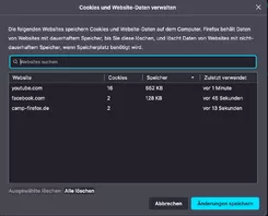 • In der normalen Cookie-Verwaltung erscheinen die nur für bestimmte Container geltenden Cookies nicht.