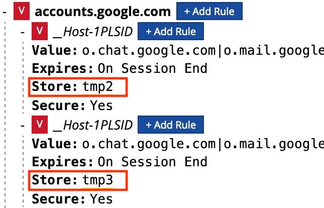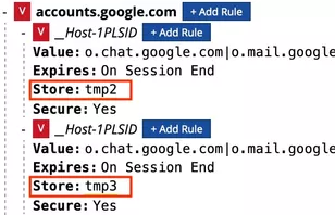 • Ich hab jetzt mal unter Verwendung von "Temporary Containers" GMail in getrennten Containern geöffnet und mich mit beiden Accounts gleichzeitig eingeloggt. In der Cookieverwaltung von Firefox ist diese Trennung nicht zu erkennen und die Google-Cookies werden gesamt, also nicht getrennt nach Account angeführt (so wie im Screenshot in #14).