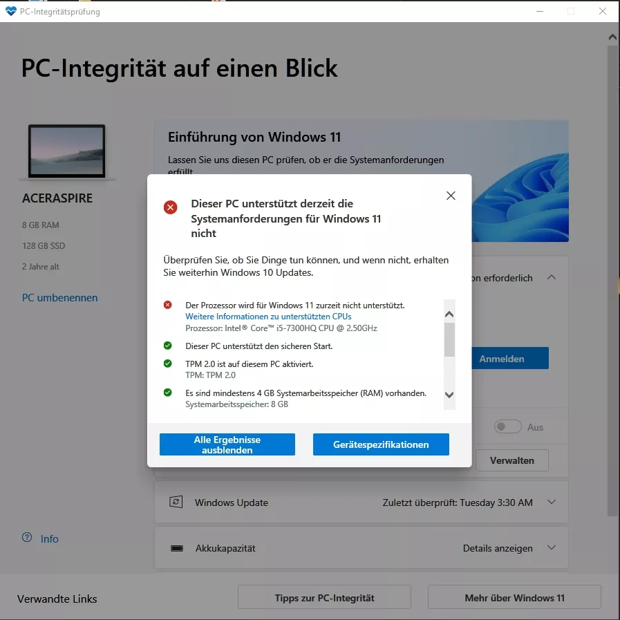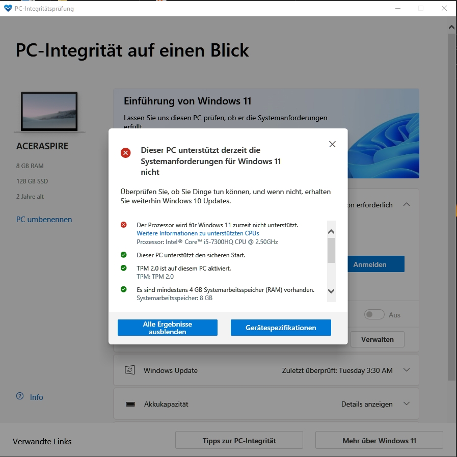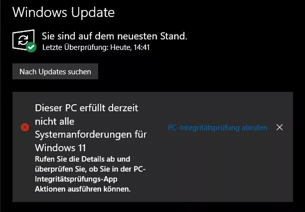 Das wurde dann auch von der genannten PC-Integritätsprüfung bestätigt: