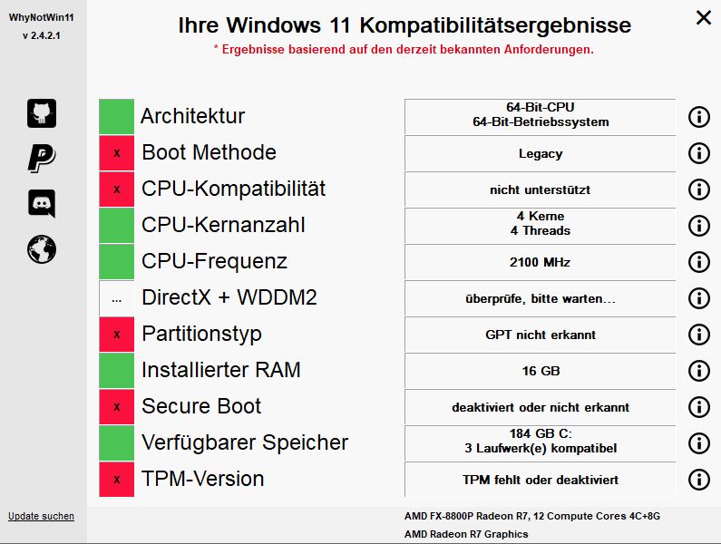 Mein Arbeitsrechner ist gerade noch mit an Bord für Windows 11 (CPU i7-8700T).