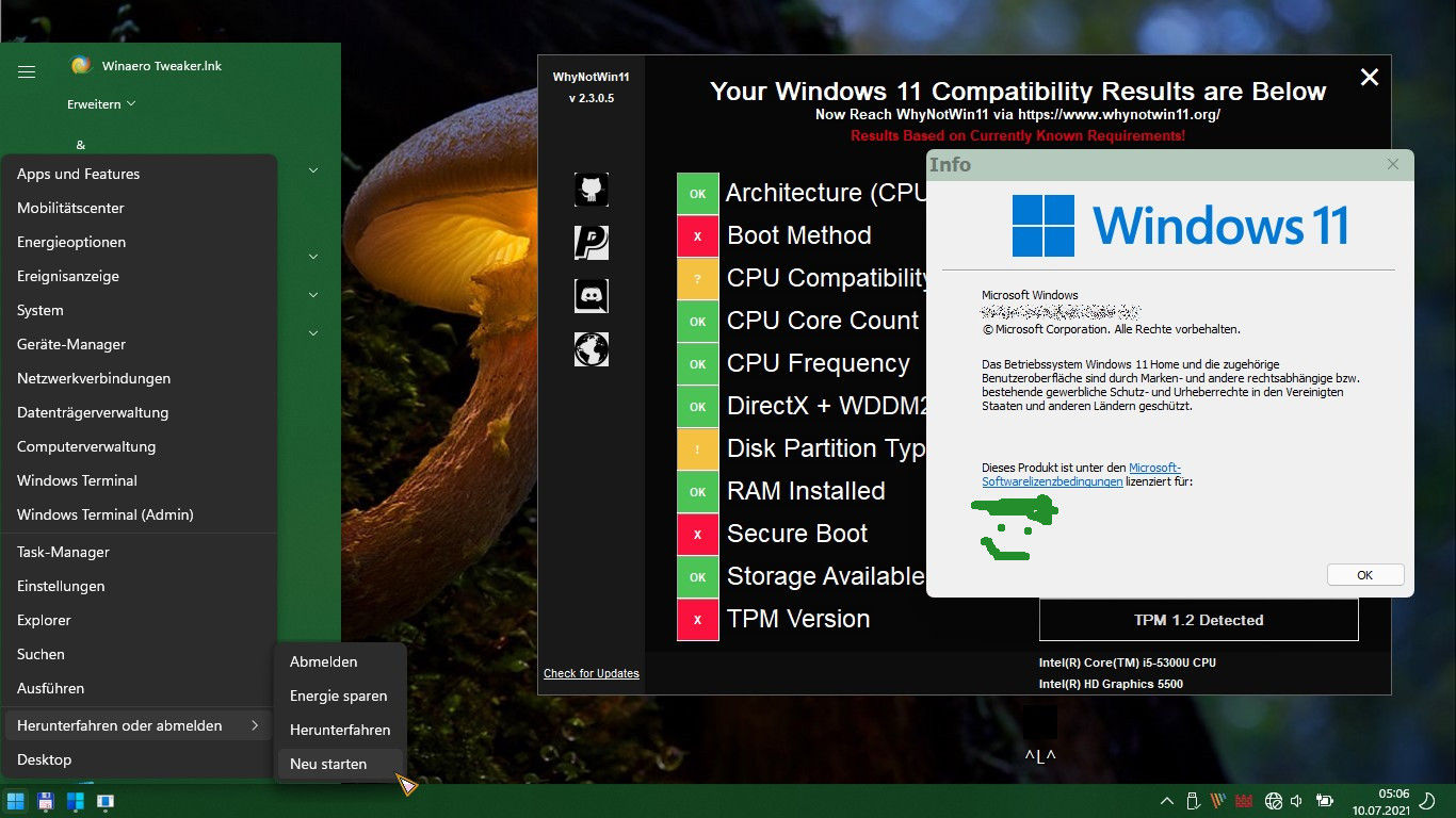 Nach Aktivierung von TPM 2.0 ist mein System zwar kompatibel, aber wozu sollte ich heute schon Windows 11 brauchen? Bis auf weiteres bleibe ich bei Windows 10 und warte in Ruhe ab.