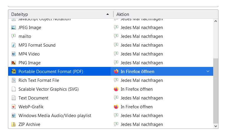 gesetzt ist. Es sollte "In Firefox öffnen" sein.