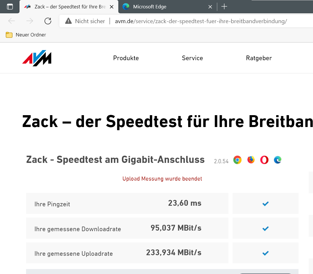 Was für ein Router? (vermutlich eine F-Box wegen AVM-Speed-Test)