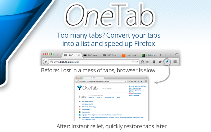 OneTab – Holen Sie sich diese Erweiterung für 🦊 Firefox (de)