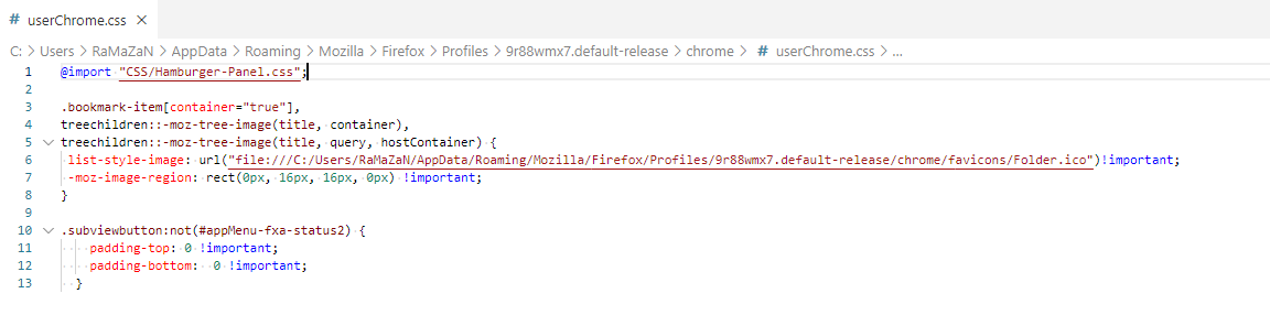 danach im userChrome.css den Eintrag so gemacht
