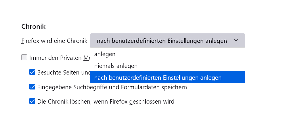 Arbeitest du im privaten Modus oder lässt keine Chronik anlegen (was auf das gleiche herauskommt)?