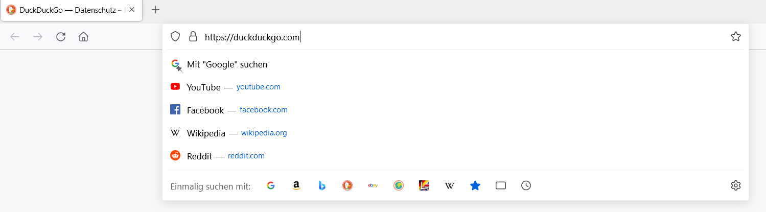 Eingestellt ist es wie vorher...also als Suchmaschine Google raus und auch Startseite individuell mit der duckduckgo Suchmaschine.