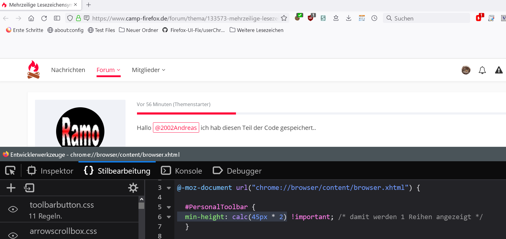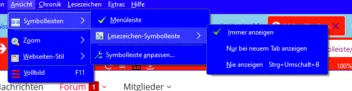 • Ist das überhaupt die Lesezeichenleiste? Sieht eher aus wie die Navigationsleiste mit größerer Höhe. Ist denn die Lesezeichenleiste überhaupt eingeblendet?