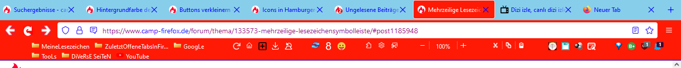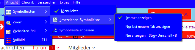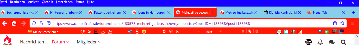 habs auch so eingestellt, dass 2 Zeilen im Lesezeichen-Symbolleiste angezeigt werden, aber kann man in die 2.te Zeile erst Sachen hinschieben, wenn die 1.te Zeile voll ist?