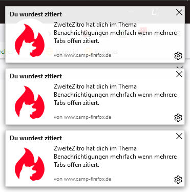 Habe ich allerdings 7 Tabs offen von diesem Forum, bekomme ich 7 Popup Benachrichtigungen untereinander. Das empfinde ich nervig.