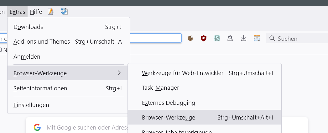 ehmm... ich habe dort keine Browser Werkzeuge dann muss es die Browser Konsole sein für Firefox?