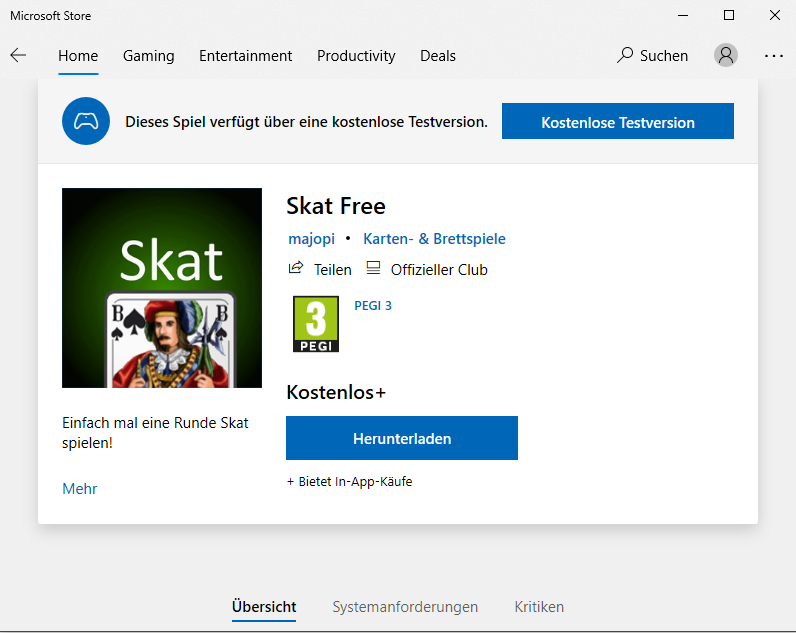 Skat-Freeware für win 10 kostenlos herunterladen?