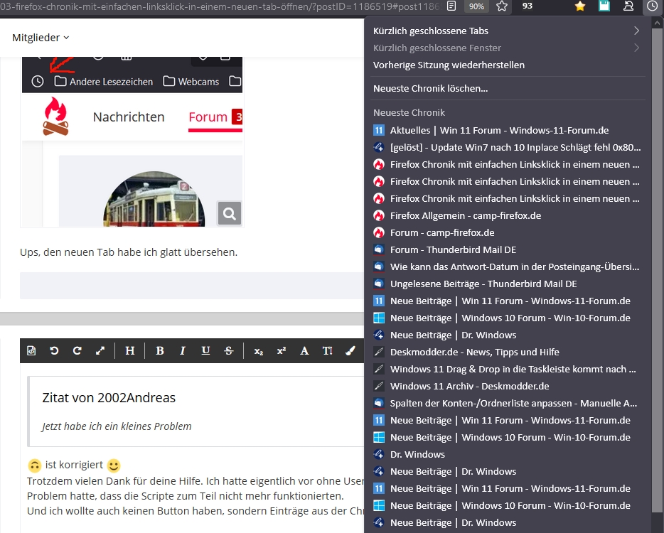 Vielleicht guckt aborix ja mal rein, obs auch für die Einträge unten im Menü Chronik hinzubiegen ist ![]()