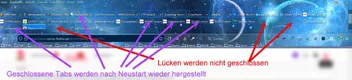 2. Tabs rücken nach Schließen eines Tabs nicht nach = füllen also die Lücke nicht auf.