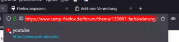 Ich habe das in die userChrome.css so eingtragen (die Datei hatte ich schon für eine andere Anpassung), aber es hat keine Wirkung, immer noch die selben Farben. Ich nutze Firefox im DarkMode und aktiviertem CompactMode, hat das vielleicht auch damit zu tun?