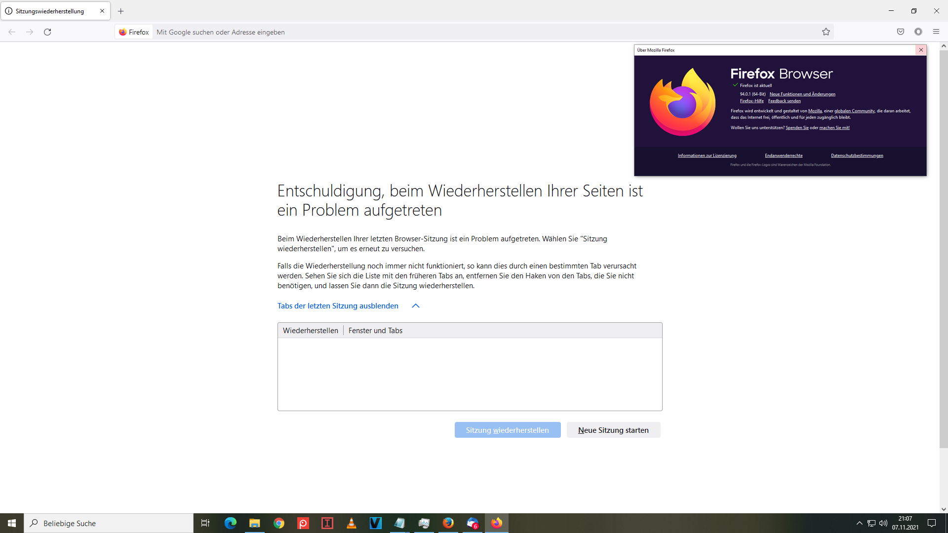 Ich nutze seit Langem Firefox in der portablen Version. Es handelt sich um die 94.0.1 64-bit-Version.
