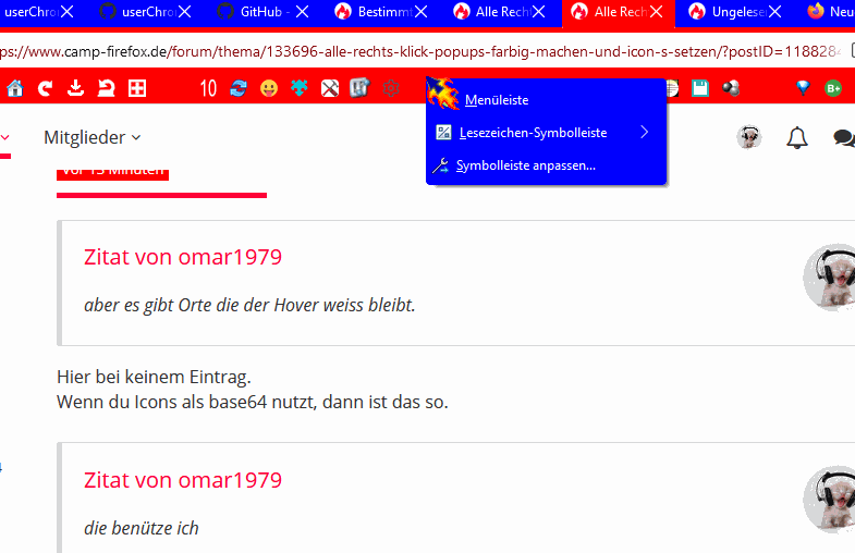 • siehst du? Wenn auf "Symbolleiste anpassen..." gehe ändert sich der hover nicht.