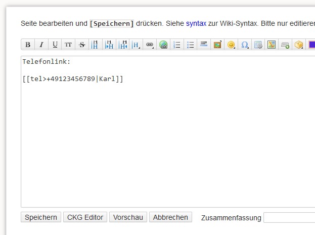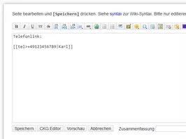 Ich habe einen Tel-Link wie folgt in unser Wiki eingebaut: