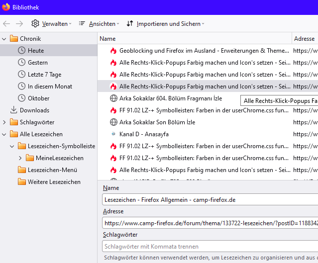 Es gibt ja Lesezeichen, die kein eigenes Icon haben, dann setzt Firefox so eine schwarze Weltkugel automatisch rein. Kann man das "schwarze Weltkugel" eigentlich ändern? Also dass es immer nur das eine Nimmt, dass wir für den schwarzen einsetzen?