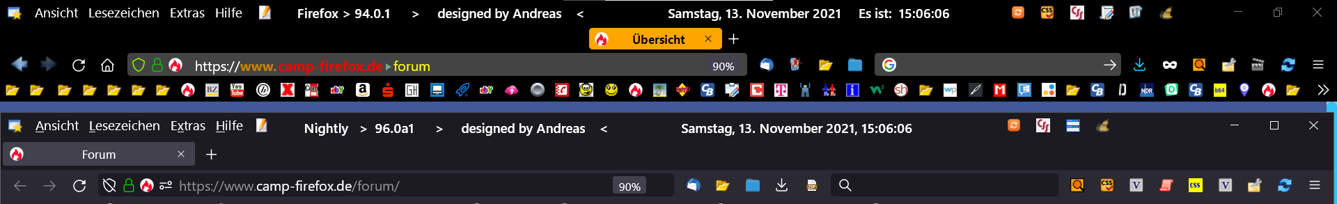 • Firefox Nightly ist eine frühe Vorversion... zur Zeit 96.0a1, dann käme die Beta-Version zur Zeit 95b* und der derzeitige Default-Firefox hat die Version 94.0.1, also deine.