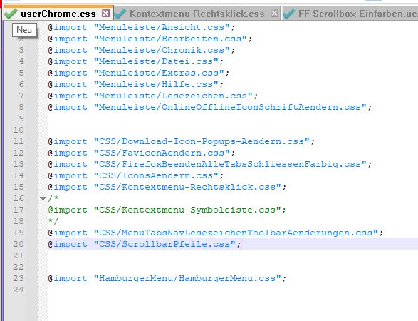Muss jeweils in die userChrome.css und userContent.css