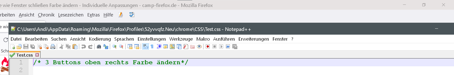 Hatte zufällig gerade noch eine Idee. Die hat auch funktioniert. Jetzt brauche ich nur noch einen code um die Farbe von Fenster schließen, Fenster minimieren / maximieren und Fenster verkleinern (halt dieser kleine Strich daneben) Farblich zu verändern.