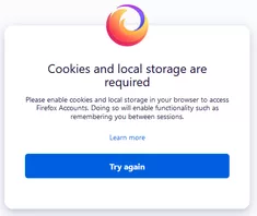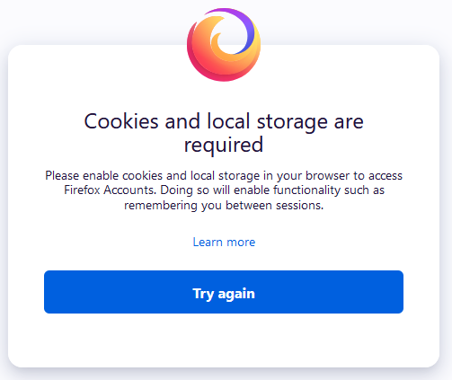 Nehmen wir mal die Login-Seite vom Firefox Konto als Referenz. Hier erhalte ich folgende Fehlermeldung: