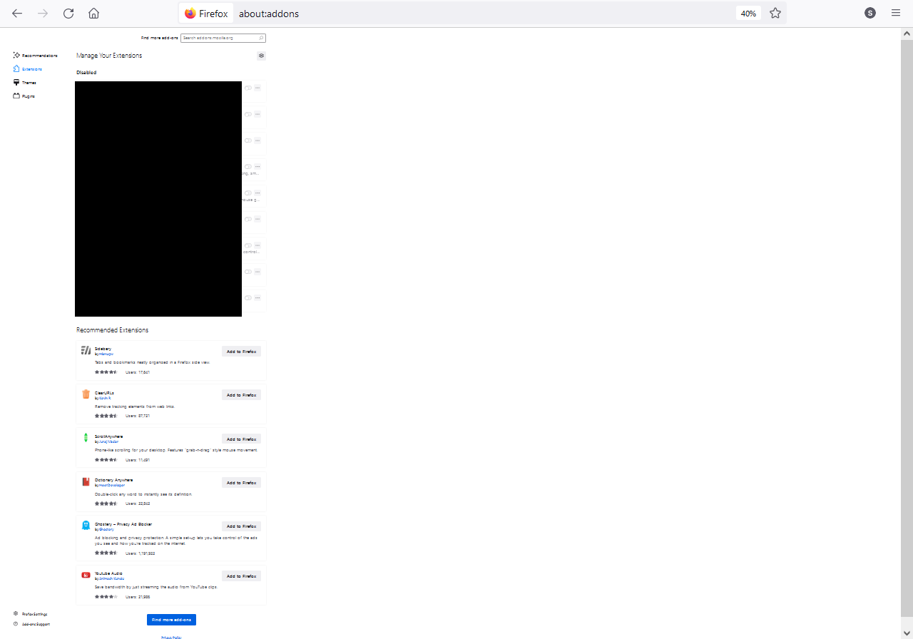 • Firefox neu installiert, noch kein Firefox Login - alles tut. Sobald ich den Firefox Login durchgeführt habe, kommen alle Addons nach und irgendwann tut es nicht mehr - reproduzierbar.