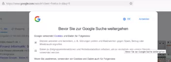 Seitdem bekomme ich bei jedem Start von Firefox die Aufforderung mich bei Google anzumelden bzw. am Ende der Seite Google´zuzustimmen.