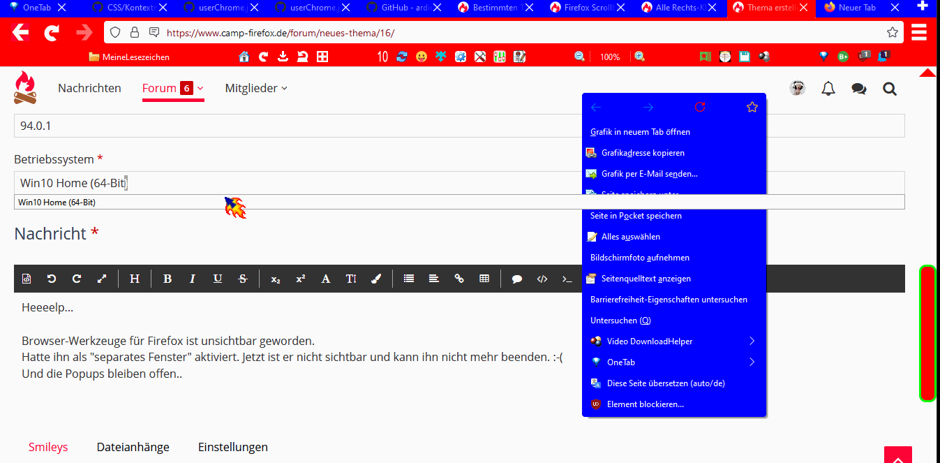 ich hab ja nichts gemacht.. Wie immer ohne zuerst den Browser-Werkzeuge zu beenden den FF neugestartet.