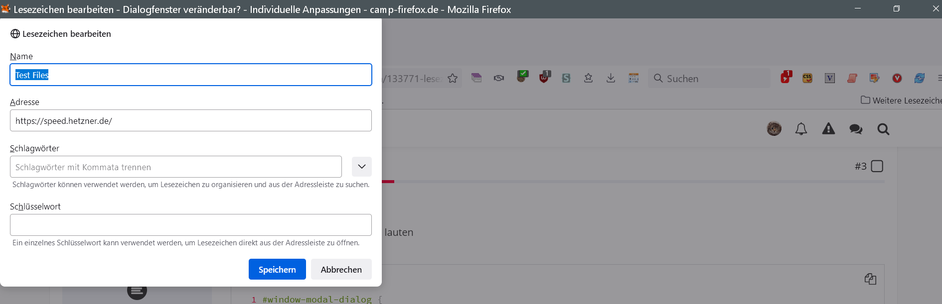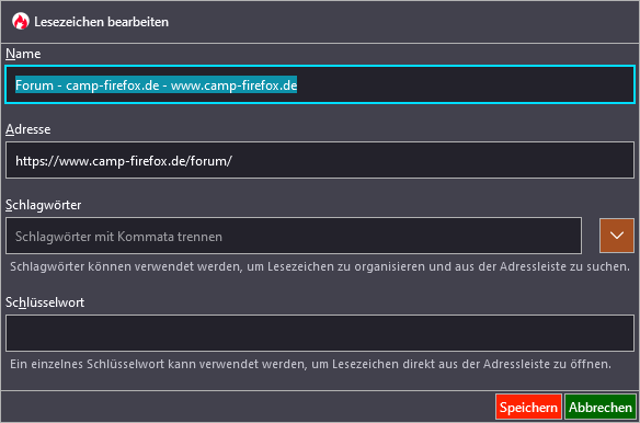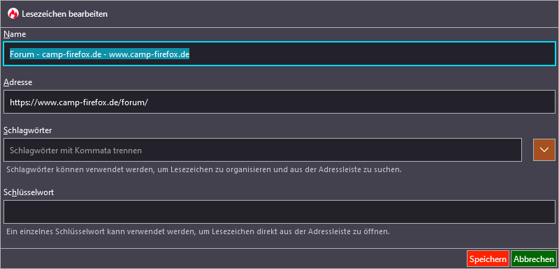 Lesezeichen bearbeiten - Dialogfenster veränderbar?