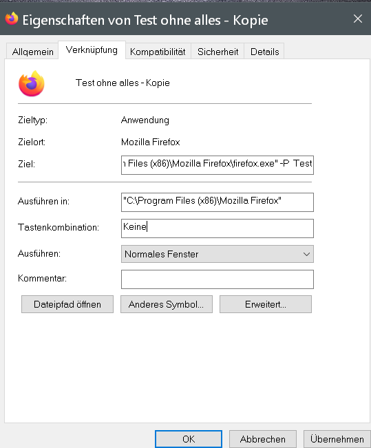 Idealweise jedes Profil eine eigene Verknüpfung auf dem Desktop.