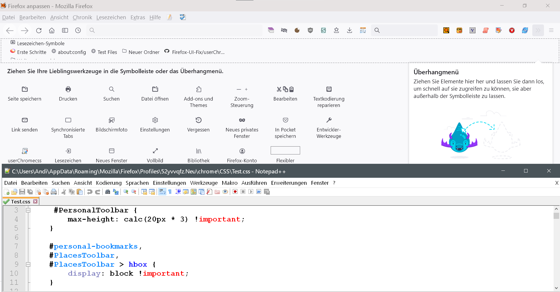 • Ich hab jetzt rausgefunden was in der userChrome.css stört.