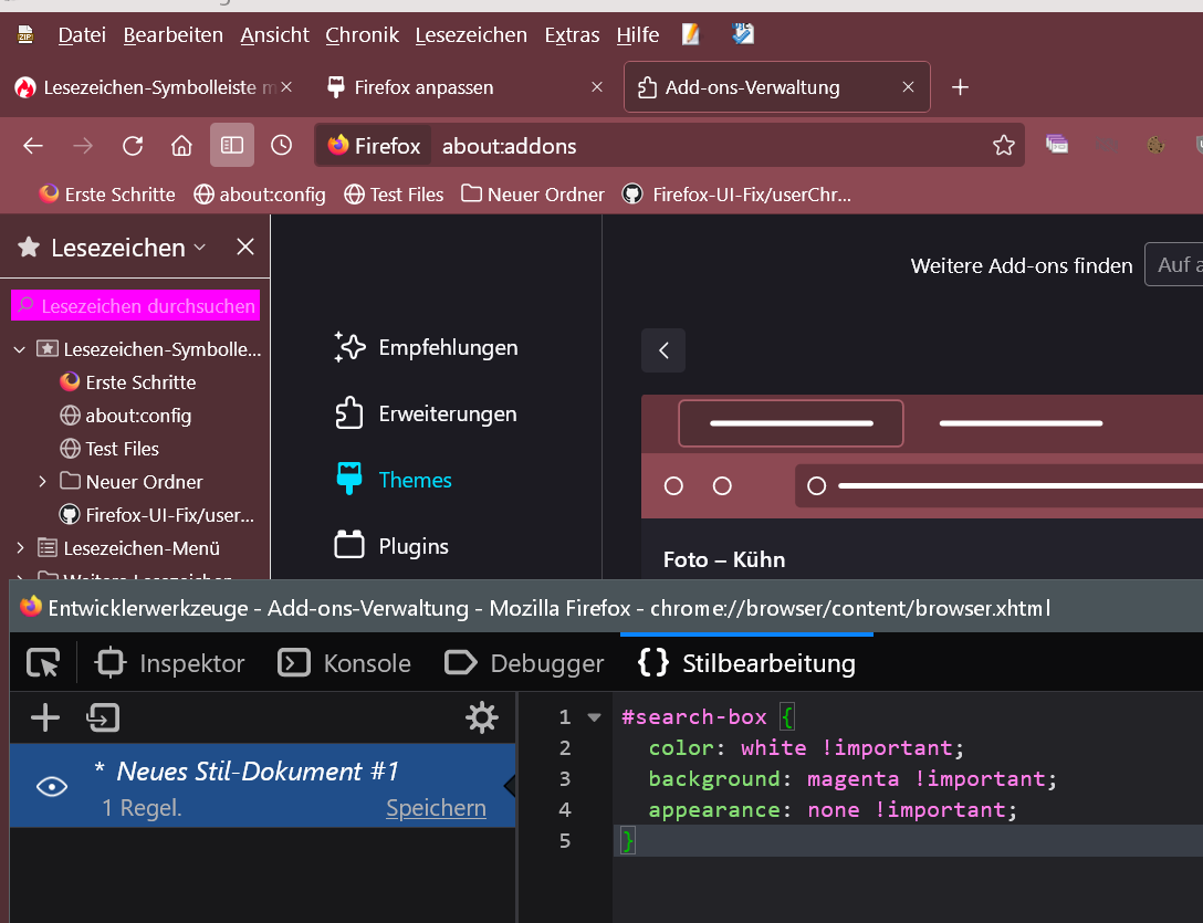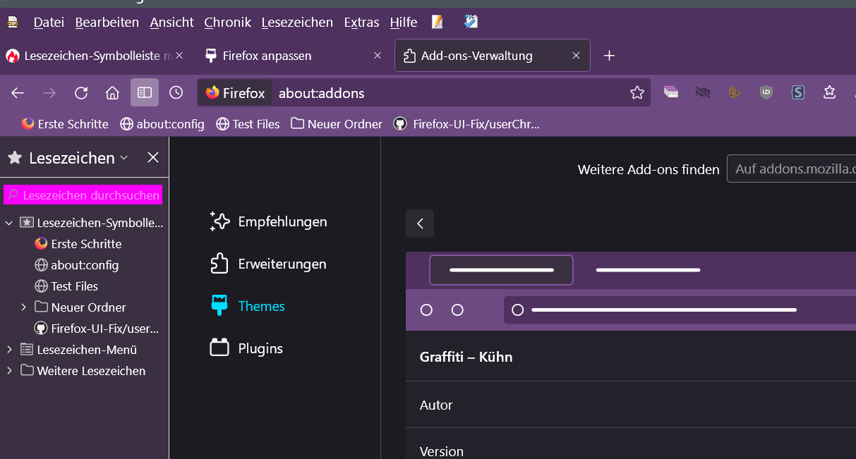 Daher ist der Hintergrund für die Lesezeichen heller und ich kann die dunklen Bookmarks, z.B. DeepL besser erkennen.
