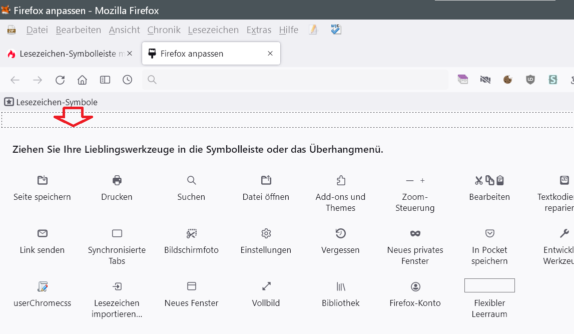 So schiebt er die Icons in die Lesezeichensymbolleiste, was auch einwandfrei funktioniert.