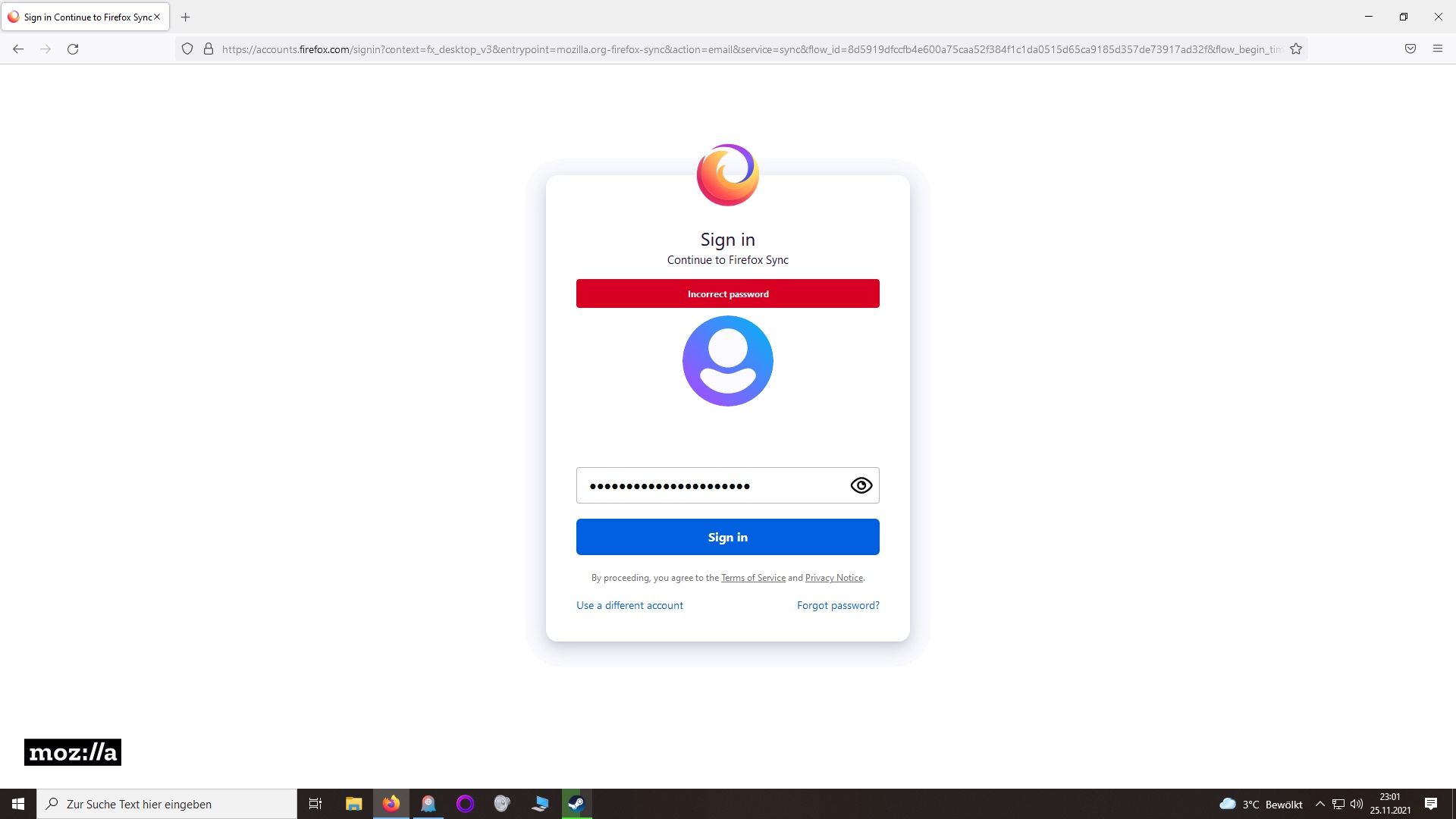 Hi. Ich komme nicht in meinem Firefox Synch Account rein, weil ich in einer schleife feststecke.