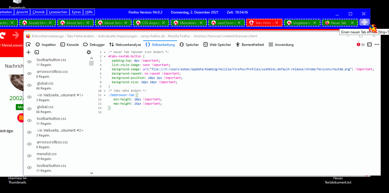 Wenn ich bei dieser Code den max-heigt: 40px auch runtersetze, wird das "Neuer Tab Icon" rechts weiss kleiner.