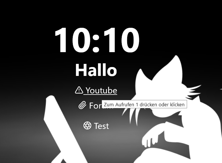 Uhrzeit und Links zu anderen Seiten können in der Erweiterung geändert oder entfernt werden.