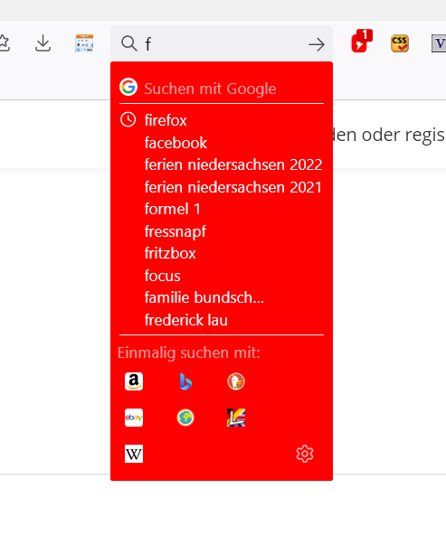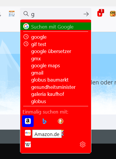 HG der eingestellten Suchmaschine oben grün