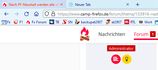 seit ich Version 95.0 habe, werden keine "Neuer Tab" Tabs mehr nach der Neustart geöffnet.