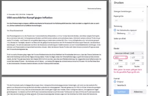 Seit einiger Zeit fällt mir auf, dass ich beim Drucken bei gewissen Websites die Seitenränder nicht verändern kann. Ich glaube, es betrifft vor allem die Druckansichten von gewissen Zeitungen, z.B. diese Seite hier: https://www.sueddeutsche.de/kultur/usa-tru…5221?print=true