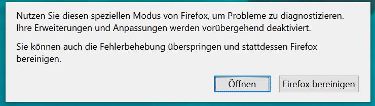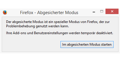 Ich kann weitergehen und Firefox wird im Speziellen Modus ausgeführt in der die AddOns deaktiviert sind.