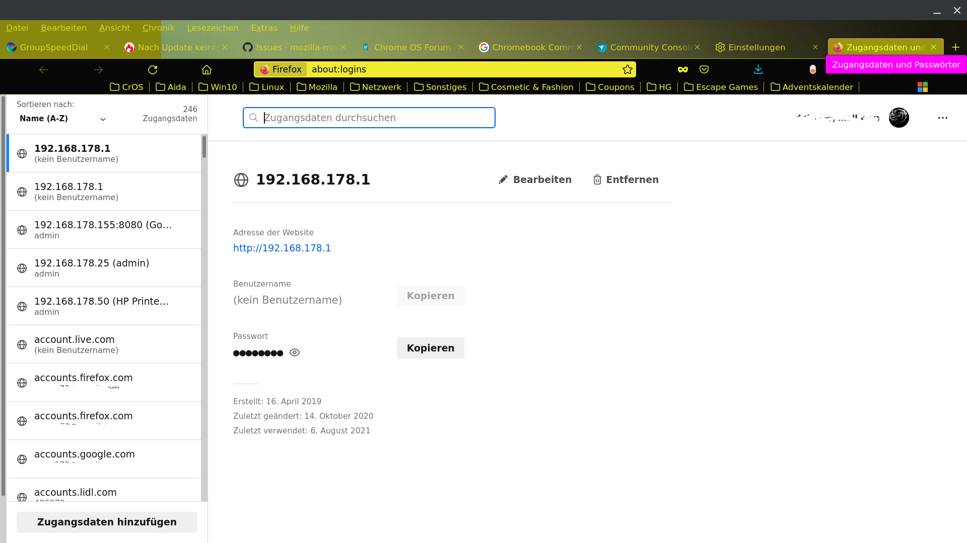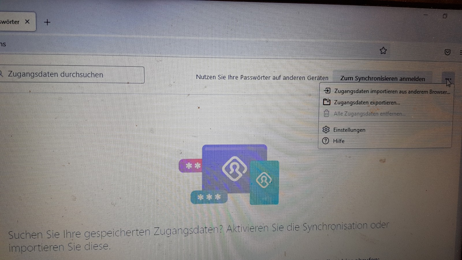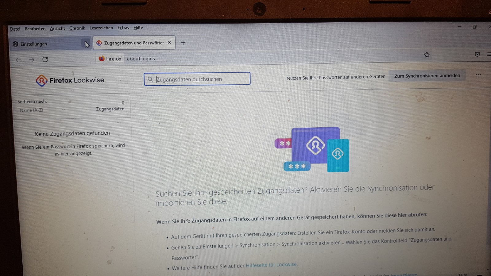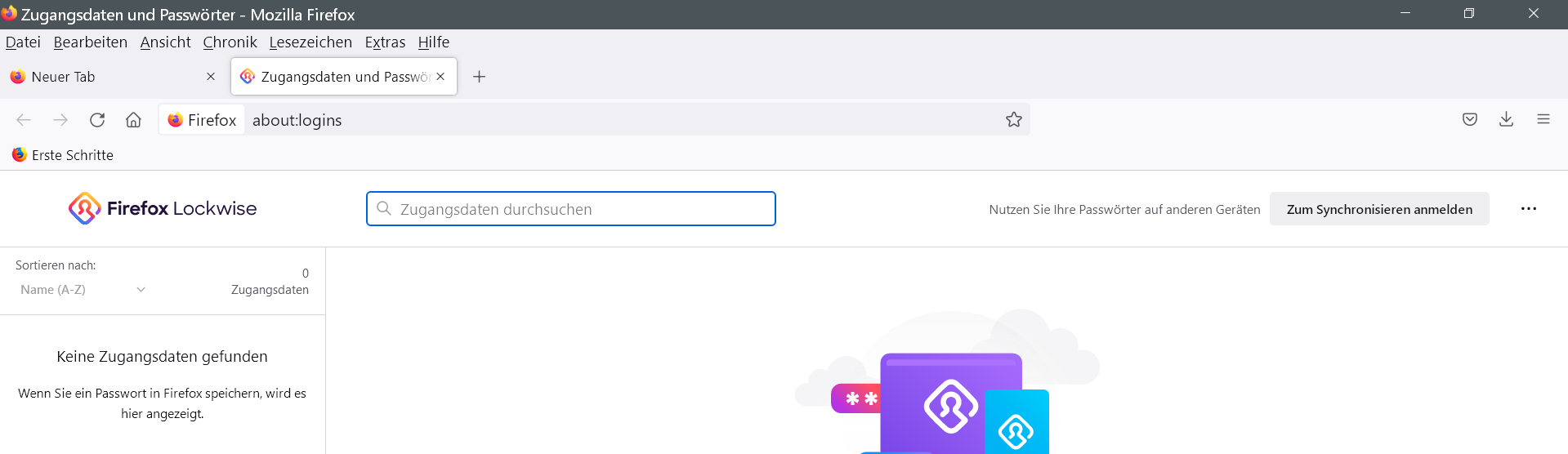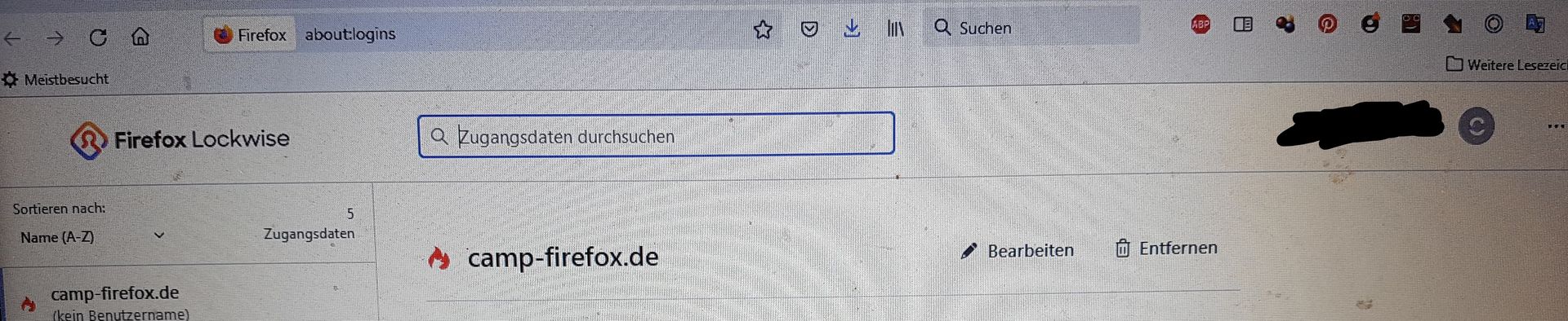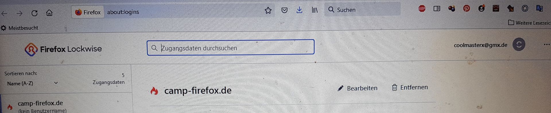 Die ähnliche Anfrage habe ich gefunden und gelesen, allerdings kann ich nicht - gar nicht auf die Zugangsdaten zugreifen. Über den Button "gespeicherte Passwörter" werde ich immer an Lockwise weitergeleitet. Kann man die "Zugangsdaten für dieses Lockwise" irgendwie wieder finden?
