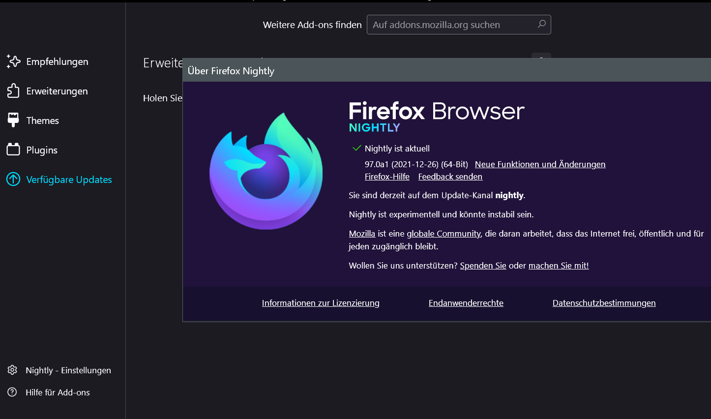 Hier in 2 Profilen vom Nightly nicht. ![]()