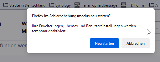 Probiere es bitte mal im Fehlerbehebungsmodus des Firefox aus: Probleme beheben mit dem Fehlerbehebungsmodus