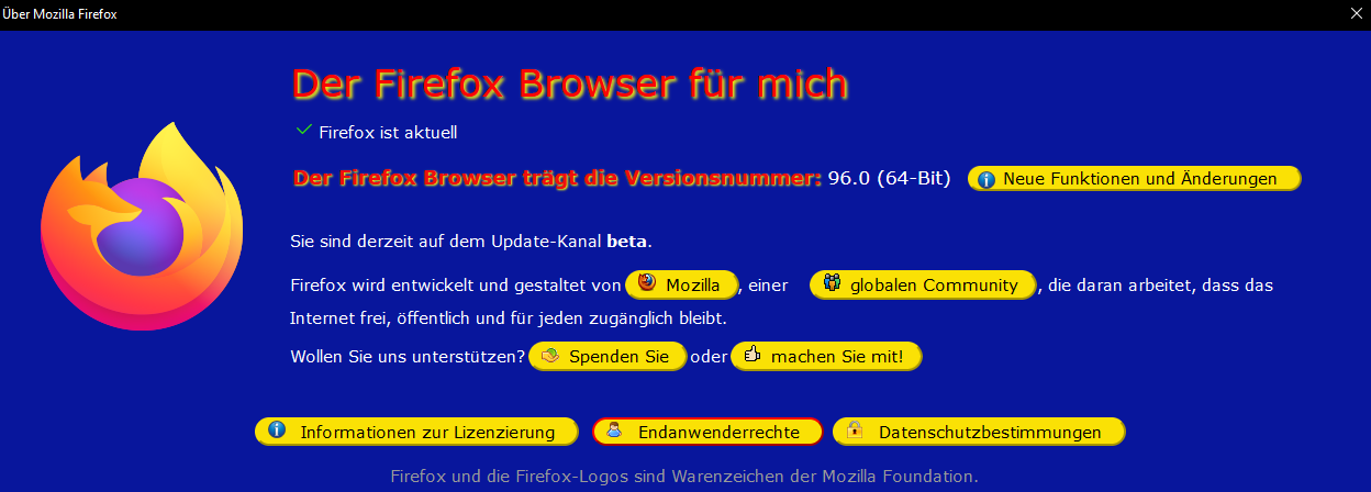 Dialog Hilfe/Über Firefox
