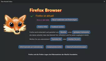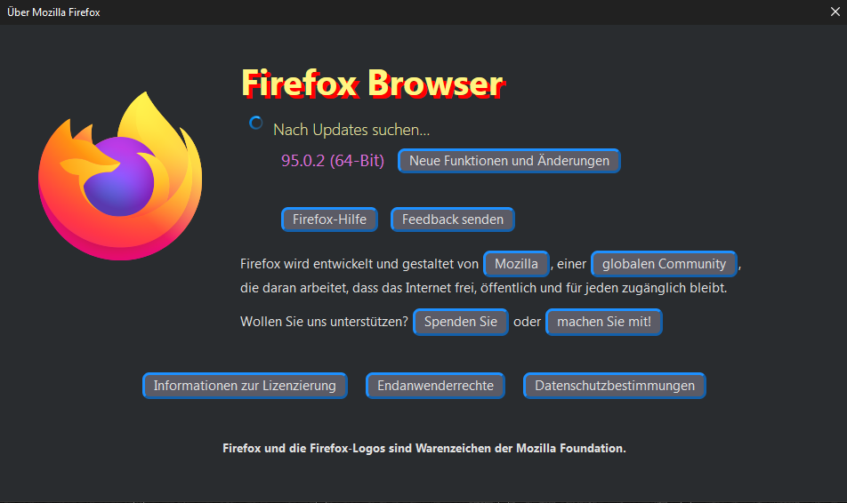 95.0.2 (64-Bit) und der dahinterstehende Link Neue Funktionen und Änderungen