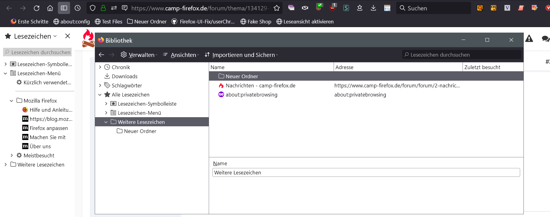• Erst mal Danke für die ausführliche Antwort. Als Anwender beschäftige ich mich nicht ständig mit Änderungen der userChrome.css oder userContent.css.