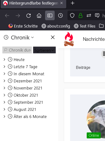 - Bei Anzeige der Chronik in der Sidebar ist der Hintergrund dunkel.